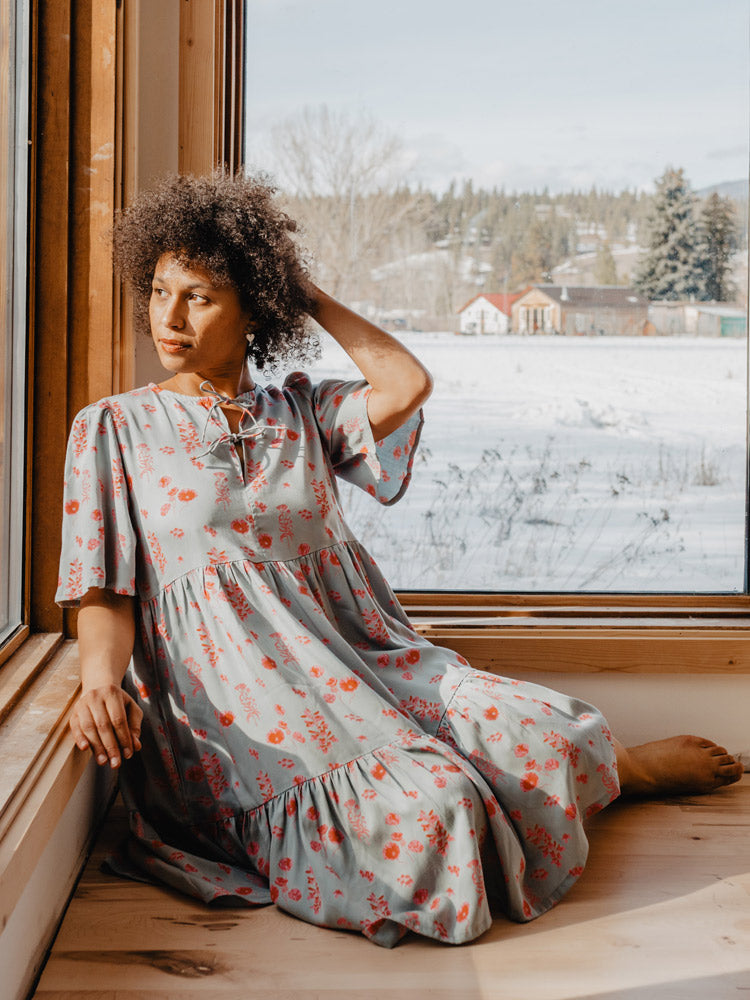 + Free ShippingIn a flowy tencel with a pop of pink. this relaxed fit mini dress features bell sleeves. a cute ruffle. hidden pockets. and a decorative tie bodice. A generous fit and above the knee cut make this a mini dress anyone can pull off!