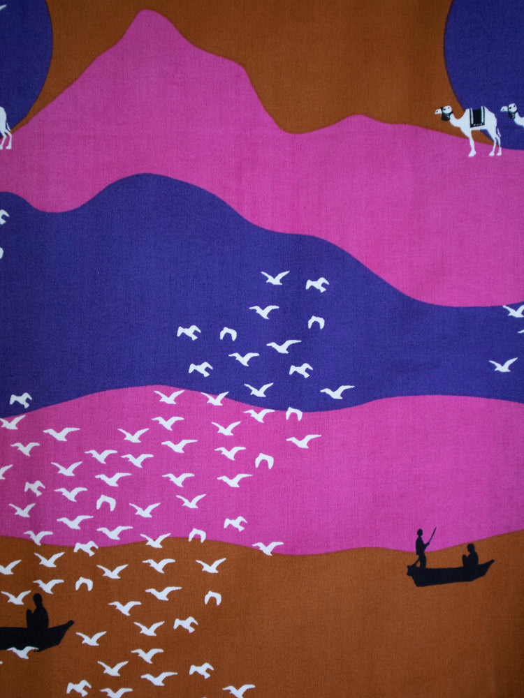 This full wrap maxi dress features a bold. graphic print depicting a fall sunset scene. Featuring super soft satin weave cotton fabric with a beautiful drape. you can wear the Aditi as a dress. or leave untied and style as a duster over jeans and a tee.
